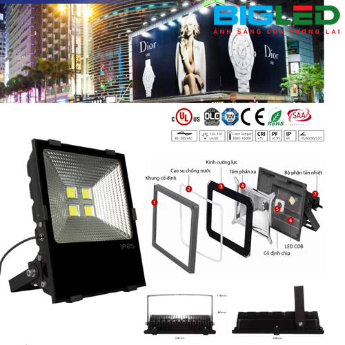 Các bộ phận cấu thành của một đèn Pha bao gồm: vỏ đèn, chip LED, bộ nguồn.